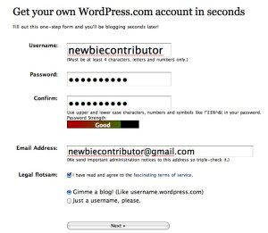 Thinking you’d like to become a TRANScend GENDER contributor, but a little nervous about the technical details? If you’ve never used WordPress before, or a collaborative blog, here’s a pictorial step-by-step guide on getting started. Follow along with Ms. Newbie Contributor as she signs up! (You can click on any of the screenshots below to see them full-size.)