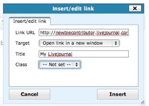 You’re finally ready to write your first post! Choose ‘Write’ from the top menu and let your creative side take over. In the screenshots below, you can see how to add a link to another web page by highlighting the text that you want to turn into a link, selecting the ‘Insert/edit Link’ button, and filling in the details in the box that pops up.