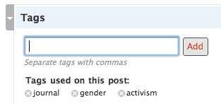 You should pick at least one category for your post, and also add as many tags as you feel are relevant. This increases the chances of your post being found by searches. When you select the ‘Add’ button next to the tags box, the tags you have entered will be listed below the box, leaving it open for you to add more. To remove a tag you’ve already added, select the ‘x’ in the circle before the tag. Make sure to save your post as you go, including after adding tags and categories, and before using the ‘Preview this Page’ button.